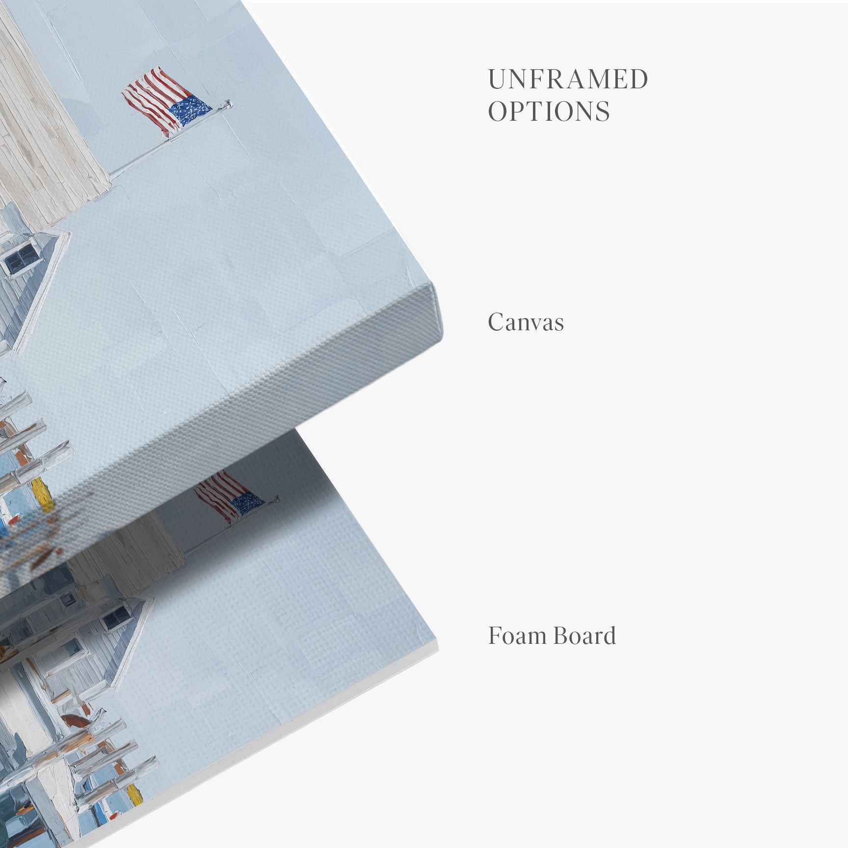• Board: Professional giclée-quality canvas print mounted on acid-free foam core